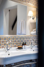 Vi har rådgivet om indretning og leveret mønstrede fliser, både maskinefremstillede og håndmalede, vaske på søjler, badekar, armaturer, toiletter, spejle, lamper og tilbehør til badeværelser.